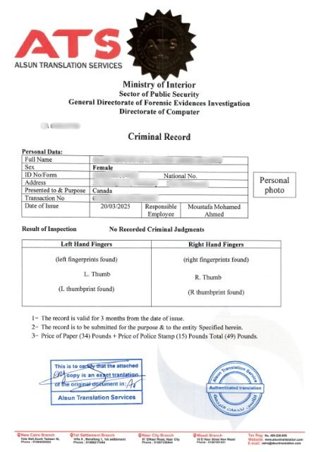 ترجمة معتمدة للفيش الجنائي